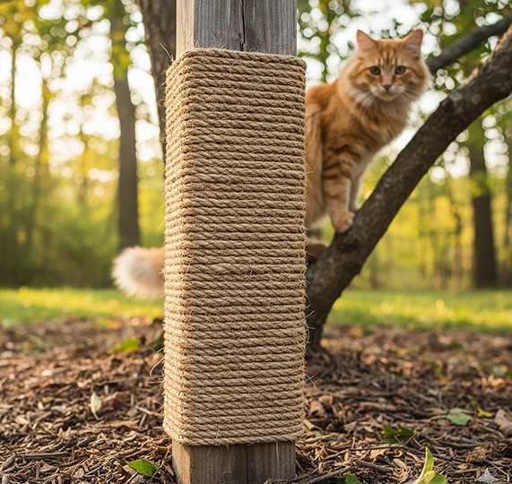 Trasforma uno dei pali verticali del tuo parco giochi in un tiragraffi per gatti.
