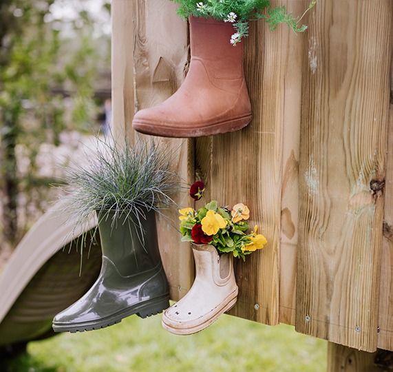 Trasforma vecchi stivali di gomma in simpatici vasi per fiori.