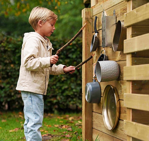 Aggiungi al tuo gioco da giardino elementi sorprendenti che i bambini possono scoprire, toccare e incorporare nel gioco di fantasia.