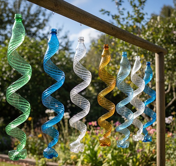 Valorizza le bottiglie vecchie trasformandole in colorate decorazioni da giardino.