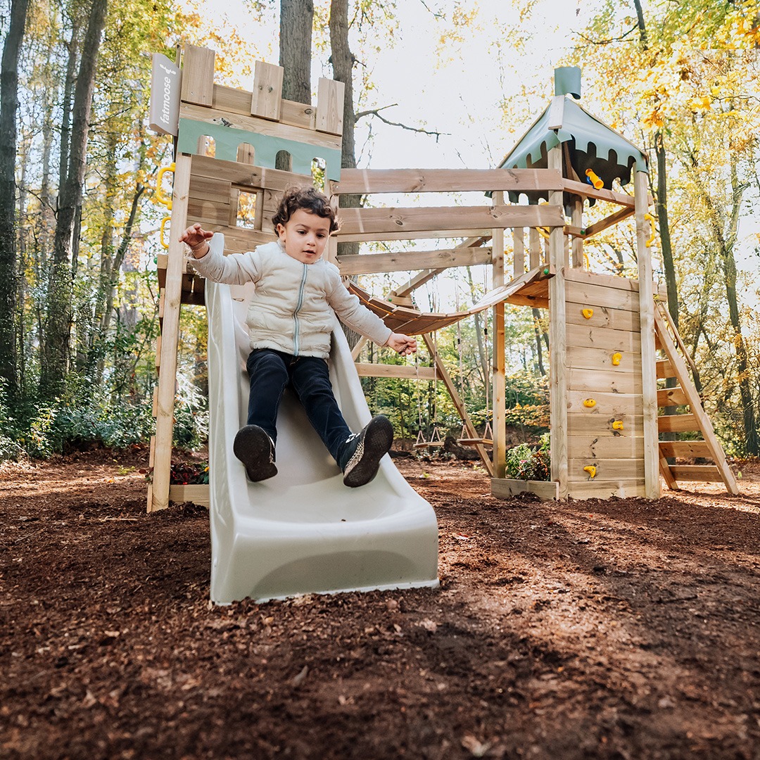 Progettiamo e produciamo da soli le nostre giochi da esterno per il giardino e diamo grande importanza alla durata e alla qualità del legno. Ogni giochi da giardino è realizzato in legno massello europeo trattato con un'impregnazione resistente agli agenti atmosferici. La vasta gamma di giochi da giardino, insieme ai vari accessori che puoi scegliere, offre a ogni famiglia la soluzione più adatta. Con un giochi da giardino fatmoose l'esperienza all'aria aperta è più grande che mai!